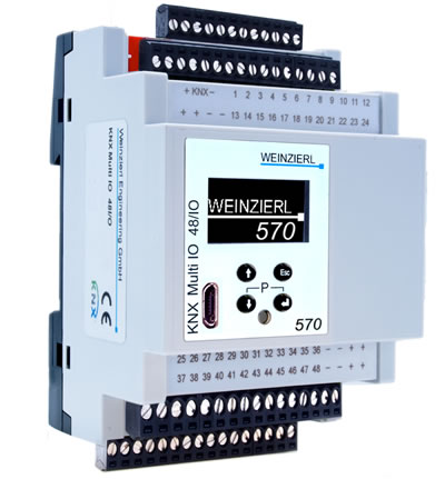 For installations where IP is not an option, the Weinzierl KNX Multi IO 570 is available as a variant for KNX TP (Twisted Pair). It shares the same functionality as the IP version but connects to the KNX network via the classic KNX bus. It provides an integrated KNX USB interface which can be used for commissioning the device, as well as for accessing the complete KNX system.