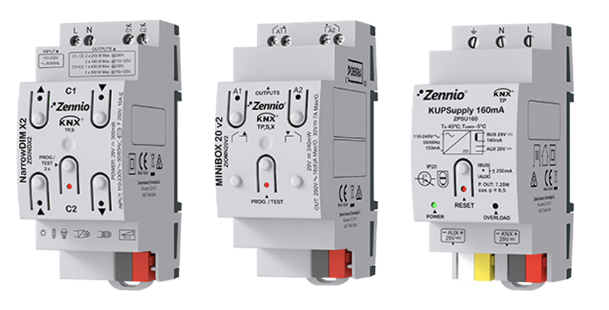 KNX devices require just 6 module widths for a typical lighting system, as opposed to 30 module widths required by other systems.